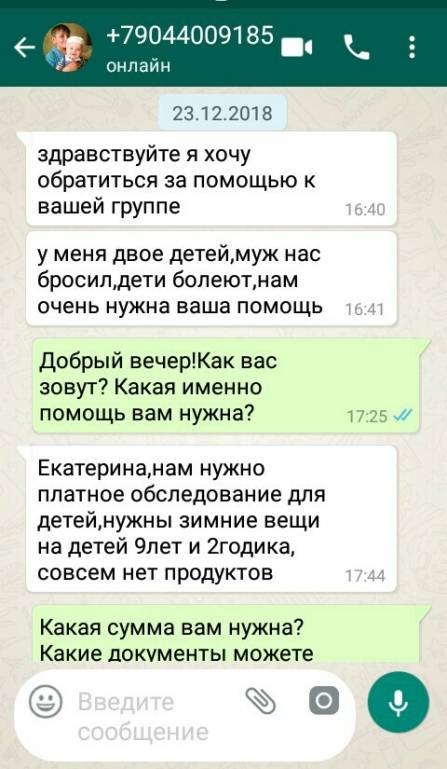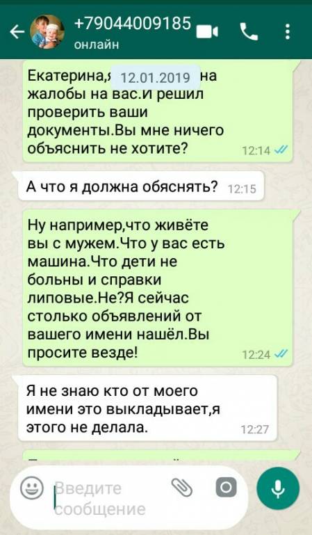 Сегодня я вам расскажу,и наглядно покажу,что за существо пробралось сюда на сайт.Знакомьтесь- Гаврилова Екатерина.На вашем сайте она зовёт себя Angel.Хотя это далеко не ангел,я бы даже сказал дьявол,спекулирующий своими детьми.Лживая женщина,которая уже так завралась,что дальше некуда!Все её посты я выложу тут.И заодно нашу переписку в WhatsApp.Это женщина мошенническим путём получила от нашей группы 50 тысяч рублей.За что сейчас на неё подано заявление в полицию.