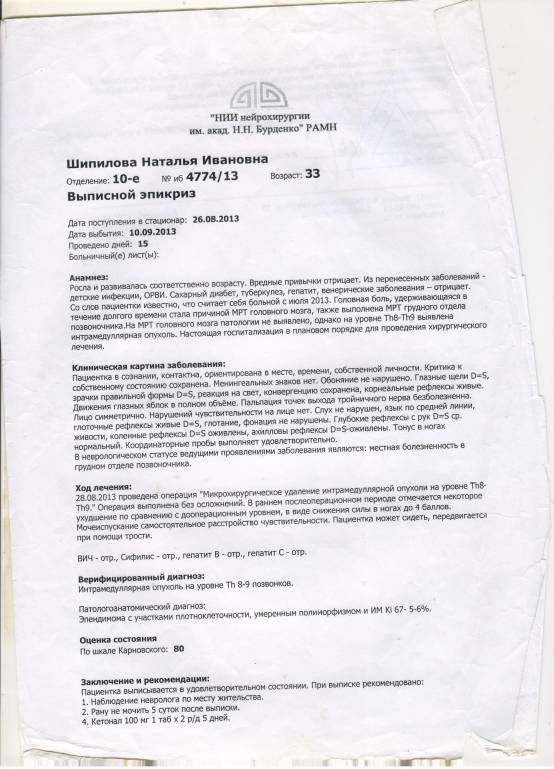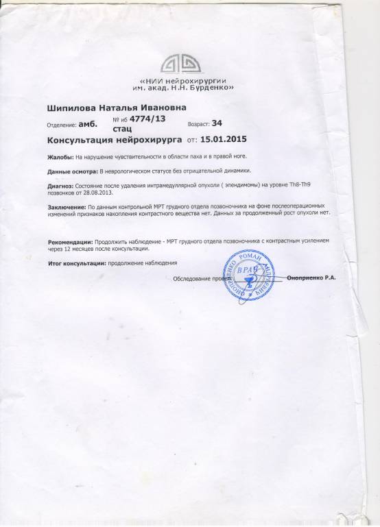 lyudmila.ivanova, а я платила ждать было нельзя опухоль была большая на уровне позвонков th8 th 9 интрамедуллярная опухоль спинного мозга эпендимома