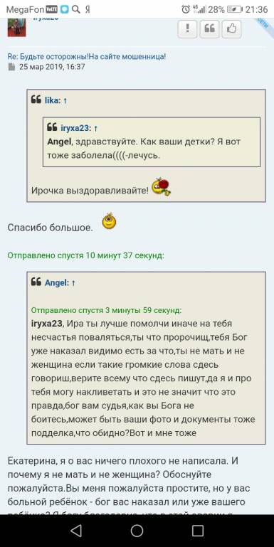 в от там ниже Ирина пишет про точто меня Бог наказал и ребенка,это что она себе позволяет,вы же скинули сейчас скриншот переписки и там внизу она пишет мнеiryxa23: 28 мар 2019, 21:41 Вернуться к началу