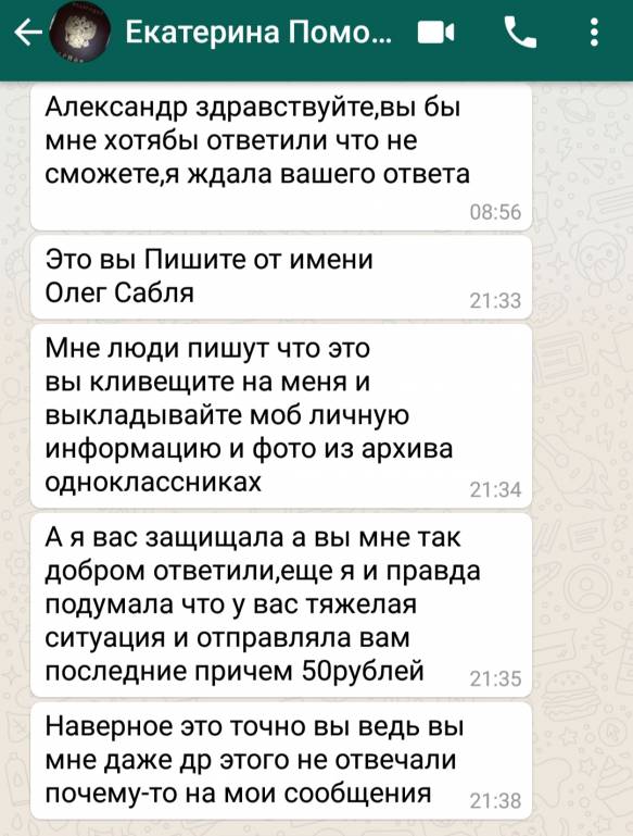Я дал ей свой номер в whatsapp и Екатерина, как было описано выше автором темы, стала заваливать меня сообщениями, примерно того же характера. Затем, по непонятным мне причинам, Екатерина перевела мне на карту 50 рублей. Так как наша с Вами полночная переписка в созданной мною теме полностью вымотала меня, я предложил Екатерине продолжить общение на следующий день.