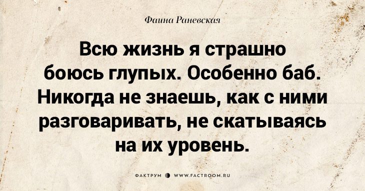 А брать цитату великой Раневской, и тем более вообще не в тему, лишний раз доказывает, что автор в своем корыте и останется. Велик ее ум