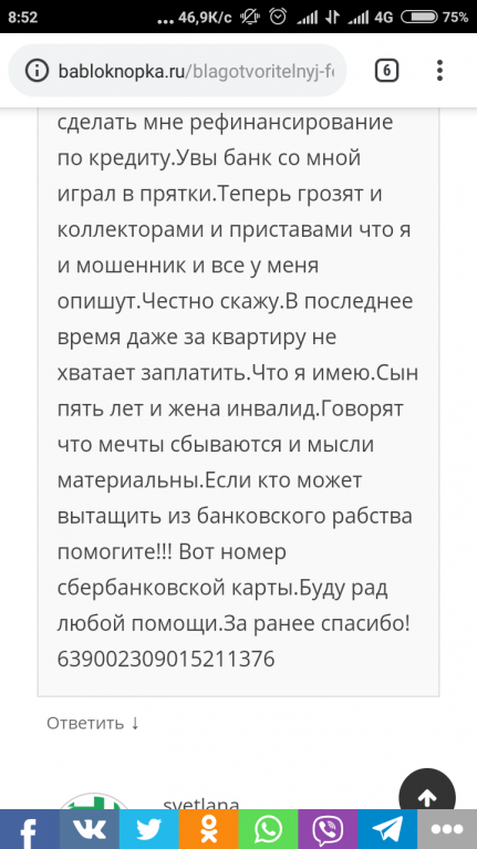 Я не попрошайничаю.Мне самому всё это очень неприятно.Я вынужден просить о помощи.Вы конкретно если не можете пожалуйста не коментируйте!Умничать и я могу.Толку от этого.Я уже писал что что мне нечего скрывать и обманывать незачем.