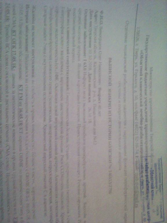К пенсии еще соцпакет. По уходу - трудно сказать, зависит от показаний врачей. Выписки без заключений. Первая от мая. А по октябрьской - он еще на лечении. В сорок лет гипертония 3 стадии - ничего удивительного в результатах. Это давление - 180/110 и более постоянно.Илина: 08 дек 2018, 14:14Ну вот. Пенсия есть. Или нанимаете сиделку, или официально можете оформиться по уходу за мужем (Людмила, поправьте плиз если это не так).ekaterina.vinogradova: 08 дек 2018, 14:03 А инвалидность-да присвоили 2группу и пенсию назначили 10.832р....
