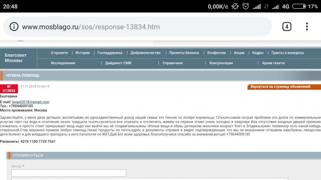Вопрос: куда делся третий ребенок и как вообще с отцом? Бросил или умер? И что с жильем: квартира съемная или комната 9 метров?E-mail: [email protected]