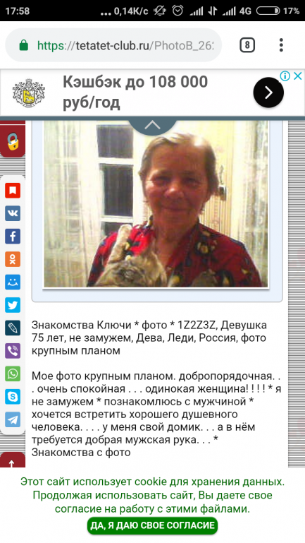 По логике, если вы не врете, вместо этих завываний здесь должно было быть объяснение: почему у мамы возраст скачет, как кузнечик и почему она, с проблемами с памятью, ищет знакомства онлайн. Завывать бесполезно, здесь на это никто не ведется. Только на факты.svetlana.mazepa: 14 янв 2019, 18:50 это вы ещё считаетесь экспертом...???это вы врёте но не я...плохой вы эксперт...есть люди кто действительно врёт...но мне не стыдно...а вам должно быть стыдно...я просто попросила помощи и всё...теперь неважно...просто знаю...что облить грязью легко...но это жизнь..и понимаю что ни кому ни чего не докажешь...у меня нет кредита ...как у других людей и то что отказали и очернили...да бог вам судья...спасибо...уже не нужно ни чего!!!