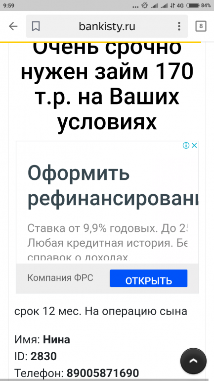 Вам никто не предлагает рефинансирование. Вам напоминают, что раньше вы просили на "операцию сыну".Ninasavina776: 13 фев 2019, 10:14 Спасибо Инна, но за рефинансированием кредитов не обращалась и никогда этого не сделаю. Потихоньку плачу сама Вы уж извините, что у меня огромная беда.Попробую выстоять. Сппсибо