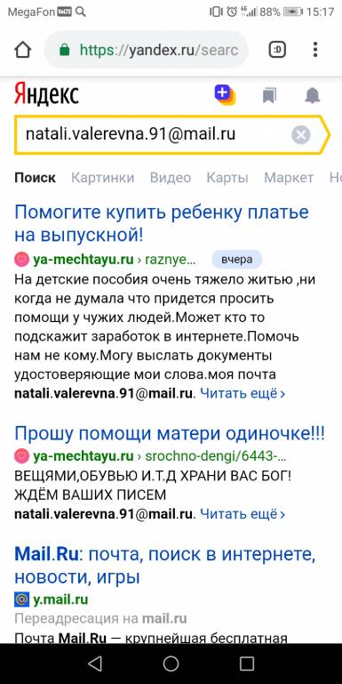 Доброго времени суток всем кто читает мое письмо. Не когда не думала что придется обращаться к чужим людям,хоть и понимаю что это бесполезно, но все же может кто то и ответит нам.Я мать одиночка воспитываю дочь 11 лет в этом году у нас выпускной,а одеть не чего так как я не работаю сижу дома со сломанной ногой,работать временно не могу вот и приходится просить помощи.Прошу ради Бога помогите!!!!!!!моя почта [email protected] с.у Наталья