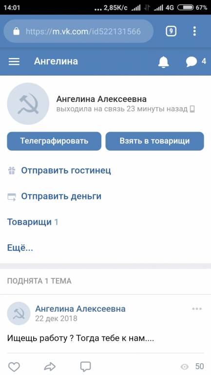 А может опять, мошенники номер телефона украли?Hans: 25 фев 2019, 15:29 зачем кому-то просить выложить объявление на страничке ВК с 1(одним) подписчиком?