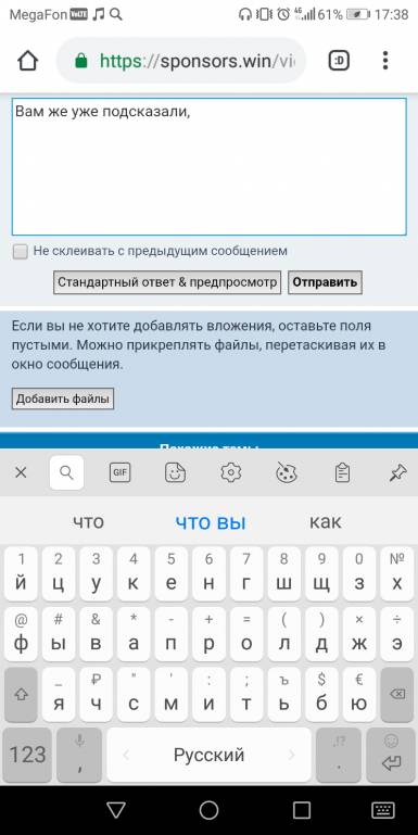 Фото добавить проще некуда. Нужно нажать на "добавить файлы". Врать вам есть, зачем. Смысл прямой: деньги на карту.Natalijgolubeva: 22 апр 2019, 13:58Я не знаю как тут добавлять фото если хотите я могу вам на телефон скинуть фото. Если вы мне не верите не верьте.Алиса Селезнева@: 22 апр 2019, 11:42 А теперь по факту.Те люди,которые прониклись вашей ситуацией,так и не дождались документов.Вывод:помощь не нужна.Закрывайте тему.