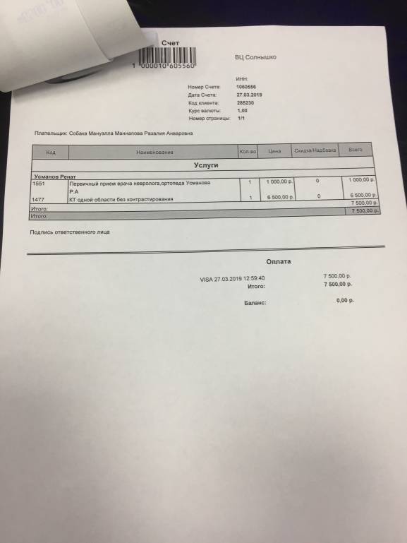 Прооперировали в Солнышко, сумма 75 600 р. + томография 7500 р.