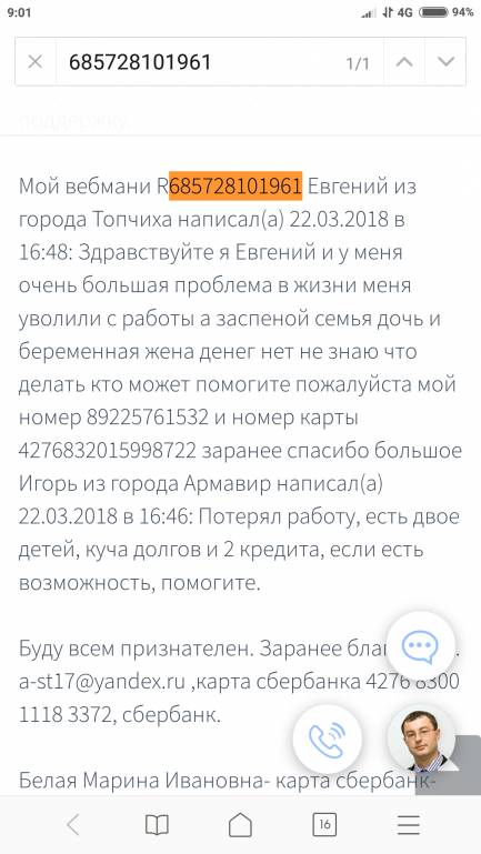 Не просил бы если бы не влез один раз в Микрозайм и теперь не могу вылезти от туда. Должен около 100т.р , каждый месяц плачу процент ,почти половина моей зарплаты, +квартира,питание одеться тоже надо.Вообщем друзья, кто может помочь ,буду очень благодарен .Webmoney R-685728101961 рубль. Z-440626977422 долл.