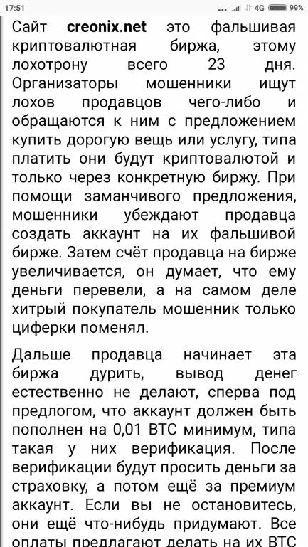 На кошелёк creonix.net. кажется.А если погуглить,имеются потерпевшие.