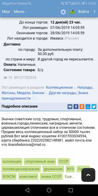 да она предоплату захочет, дабы значки забронироватьinna.tarasova: 15 июн 2019, 14:38 Ну или нужны деньги именно на карту, или, можно предположить, что долго потом искать купивший будет свои значки. Логичнее было бы пообещать почтой выслать. Так хоть дольше искали бы.