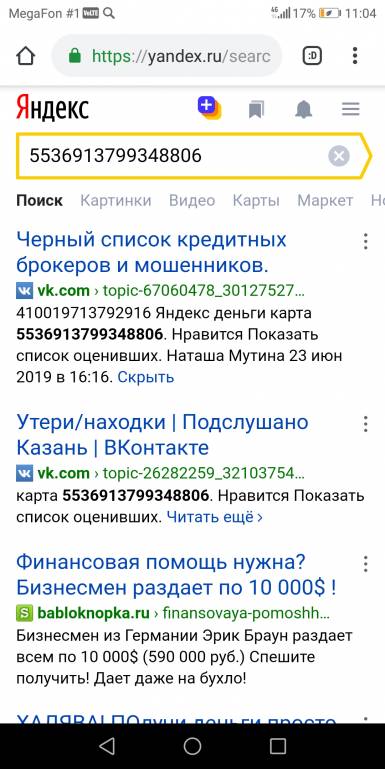 При этом название банка, чья карта, вы упорно скрываете, как и в том объявлении, что вам привели.Тамара+111191: 05 июл 2019, 10:55 Меня зовут Тамара,я мать одиночка и так получилось что срочно нужны деньги на детское питание,подгузники и прочее на оплату счетов, очень срочно,кто сколько может,хоть банку смеси,могу все продемонстрировать и показать документы. 410019713792916 Яндекс деньги карта 5536913799348806,так же моя почта