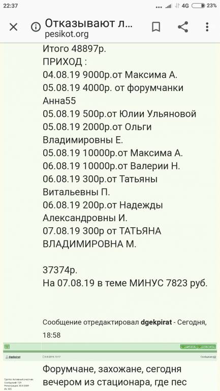 [quote=kysh post_id=51991 time=1565204180 user_id=3680] [ref]inna.vdovichenko[/ref], мы не злюки=) нет денег, не берись. [/quote] Я ее понимаю, сама не могу пройти мимо животного, но иногда их становится слишком много и один не тянешь, было время года 4 назад, что я умудрилась приютить 40! собак и щенов, и только с помощью пика собрала недостающую сумму для их пристройства, это мне обошлось в 150 т. р., но моя совесть теперь чиста, ну вот такие мы шизики, в этом году перед новым годом пришли 17 щенов и 4 больших собаки, и вуаля 50 мои и 30 форум помог и все в хорошем месте и стерилизованы, как говорил один товарищ, чем больше я узнаю людей, тем больше я люблю собак :wink:
