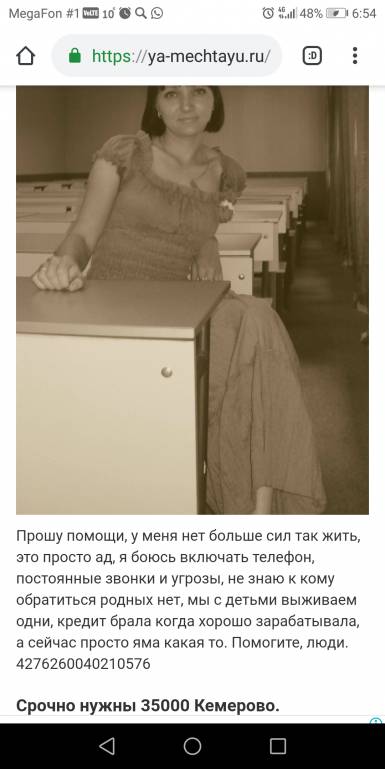 Здравствуйте, прошу помощи у всех неравнодушных людей. Так получилось что этой весной мы с дочкой остались одни, наш папа умер от рака, последний год что мы за него боролись все средства уходили на его лечение, я работаю в магазине продавцом, зарплата 11000 рублей, весной 3 месяца не работала вообще сидела с мужем, но спасти его не смогла. Лето работала, но все деньги уходят на кредит и оплату коммунальных услуг, моя доченька идет в 1 класс, а собрать ее не на что. Обещали помось из соц. Защиты но пока тишина, а осталась всего неделя. Сил уже просто ни на что нет. Все выплакала, помогите кто чем сможет. Мой эл.адрес [email protected], мой номер карты 4276260040210576. Буду рада любой помощи или может кто то знает реальную надомную работу, я бы могда подрабатывать.