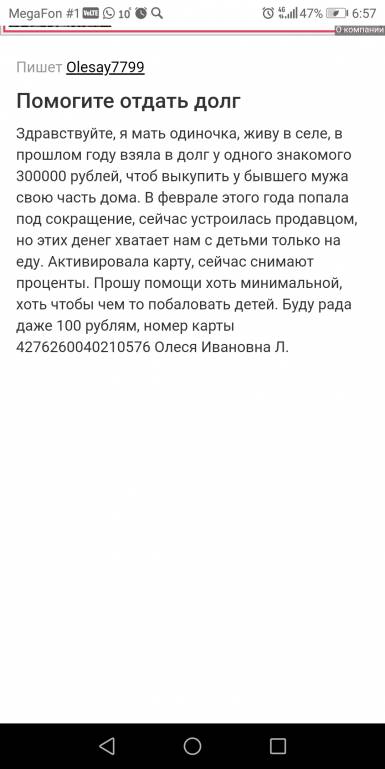 Пенсия по потере кормильца?Olesay: 26 авг 2019, 06:44 Здравствуйте, прошу помощи у всех неравнодушных людей. Так получилось что этой весной мы с дочкой остались одни, наш папа умер от рака, последний год что мы за него боролись все средства уходили на его лечение, я работаю в магазине продавцом, зарплата 11000 рублей, весной 3 месяца не работала вообще сидела с мужем, но спасти его не смогла. Лето работала, но все деньги уходят на кредит и оплату коммунальных услуг, моя доченька идет в 1 класс, а собрать ее не на что. Обещали помось из соц. Защиты но пока тишина, а осталась всего неделя. Сил уже просто ни на что нет. Все выплакала, помогите кто чем сможет. Мой эл.адрес [email protected], мой номер карты 4276260040210576. Буду рада любой помощи или может кто то знает реальную надомную работу, я бы могда подрабатывать.