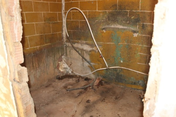 ванна. Стена слева с наклоном, её надо переделывать.