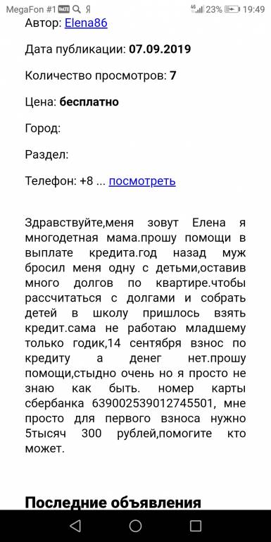 Здравствуйте я многодетная мама,прошу помощи для первого взноса по кредиту.муж бросил меня с детьми и оставил много долгов по оплате квартиры.для выплаты долгов и чтобы собрать детей в школу мне пришлось взять кредит.на данный момент я не работаю так как маленькому ребенку годик.прошу помочь мне кто сколько может,мне нужно для первого взноса 6 тысяч рублей.если нужно предоставить документы я предоставлю.заранее благодарю номер карты сбербанка 639002539012745501