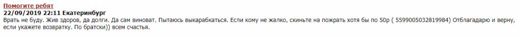 Русфонда не указывается номер карты,а это значит мошенник спрашивает денег на свою карту или карту знакомых,
