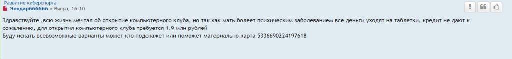 [quote=Эльдар666666 post_id=57078 time=1569933992 user_id=4960]5336690224197618[/quote]а компьютерный клуб за 2 миллиона рублей уже открыл, жулик-сочинитель?)