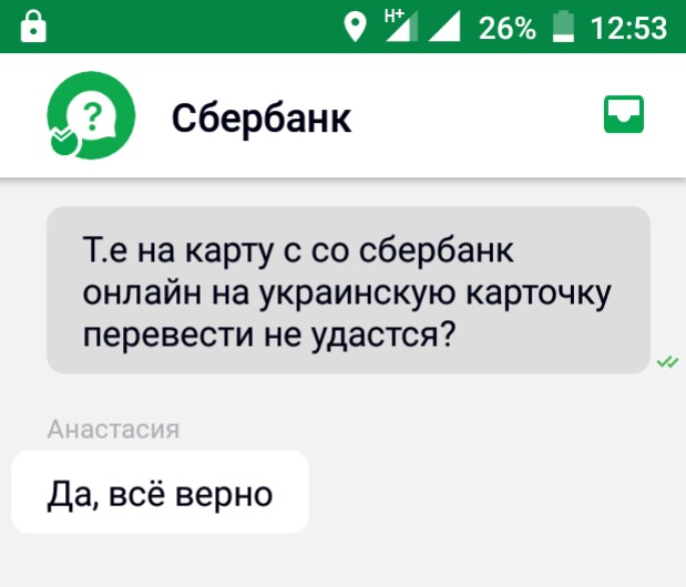 Добавлю сообщение о переводе на Украину,переписка с сотрудником сбербанка