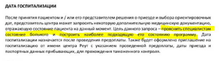 Еще смутил один (возможно и не один) момент. Клиника запрашивает медицинские документы после прибытия больного. То есть заранее они программу лечения не составили? Приедет пациент а дальше как пойдет?