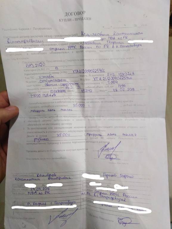 Прикладываю фото ДКП (Продажа автомобиля с моей стороны новому владельцу, лето 2019 г.)