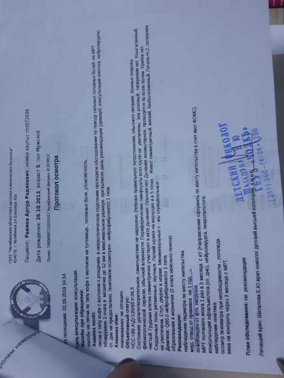 Да конечно,есть заключения всех МРТ,выписки о постановки на учет к онкологу,и нейрохирургу с генетиком,у нас пятнышки перешли в голову,образовалась опухаль 0.6мм и 0.12мм,ждем на данный момент очереди на повторное МРТ, Я новичок в такой просьбе,пока не знаю куда разместить все выписки,не могли бы вы мне подсказать?