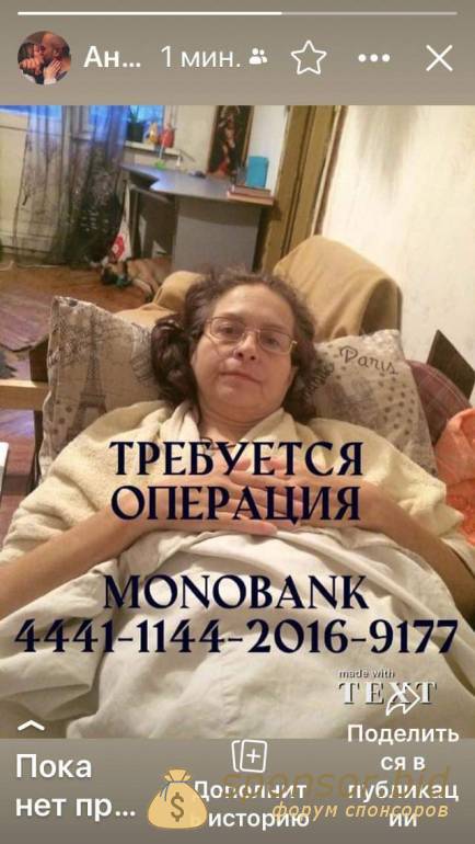 Привет всем!Мне очень печально признавать это,но я нуждаюсь в вашей помощи.У меня обнаружили опухоль в малом тазу,я перенесла одну операцию и две больницы.Сейчас есть направление в Померки на вторую операцию.Но цифры,которую называют врачи,для нас неподьемны.Прошу помощи.Кто ,как и чем может.Связи,врачи,больница,деньги.К.т.0636159552.,карта4441 1144 2016 9177 Щиченко Антон.